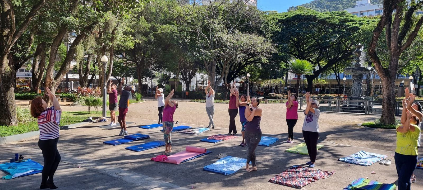 Em homenagem ao Dia Internacional da Yoga (21/Junho), foi realizada hoje (19/06) uma aula bem alegre e dinâmica em um dos nossos Parques Históricos e cartão postal, no Centro Metropolitano de Vitória, Parque Moscoso, conhecido popularmente como Parque Gostoso. Foi uma manhã muito festiva e divertida. E no final, confraternizamos com um delicioso piquenique.